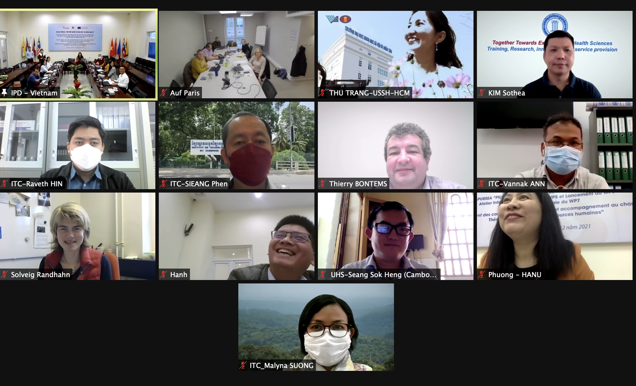 Ce 06 décembre 2021, tous les partenaires du projet se sont réunis pour un atelier de restitution du lot d’activités 5 (WP5), qui a été organisé en présentiel à Dà Nang (Vietnam) avec la participation des points focaux des universités vietnamiennes et en ligne pour les partenaires du Cambodge et de l’Europe.