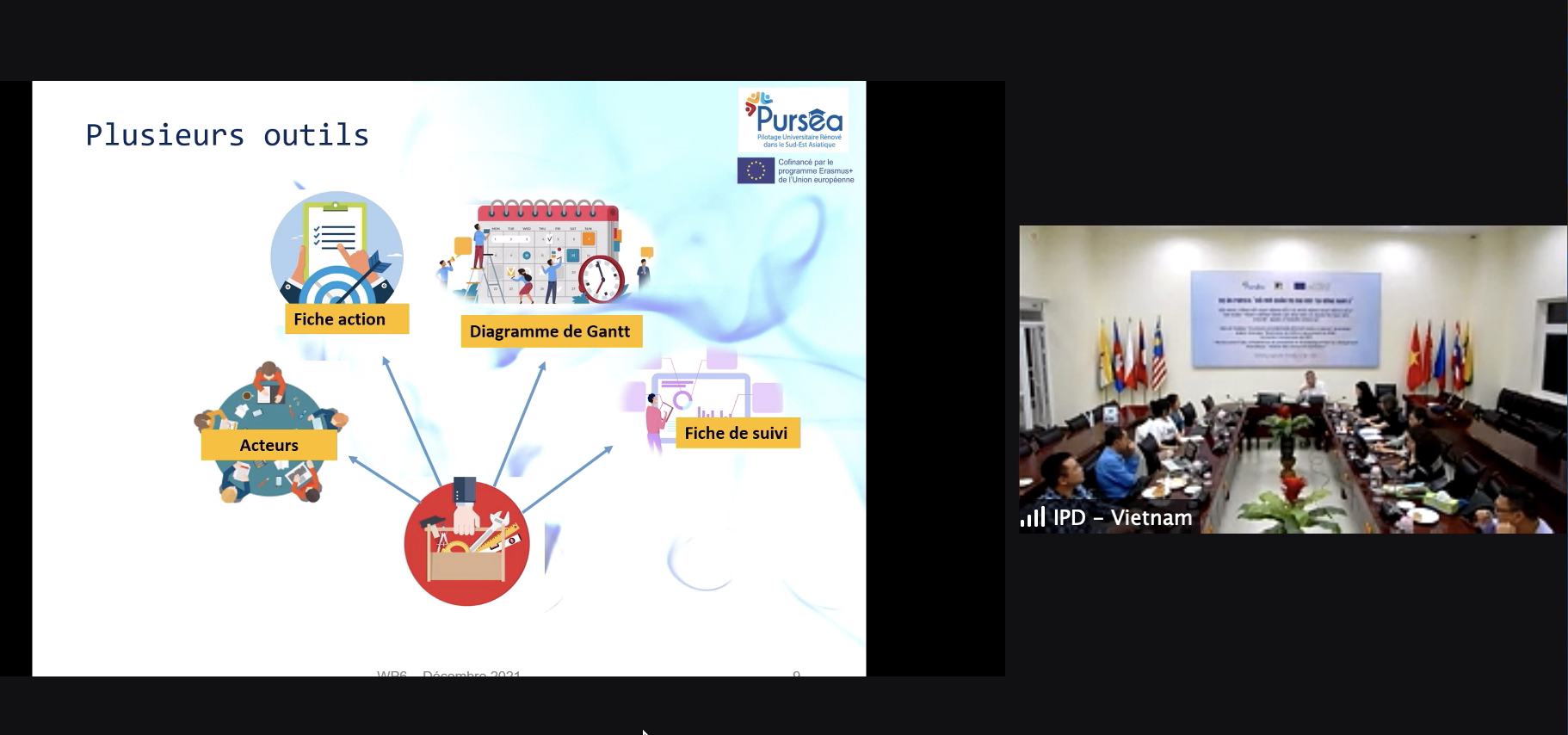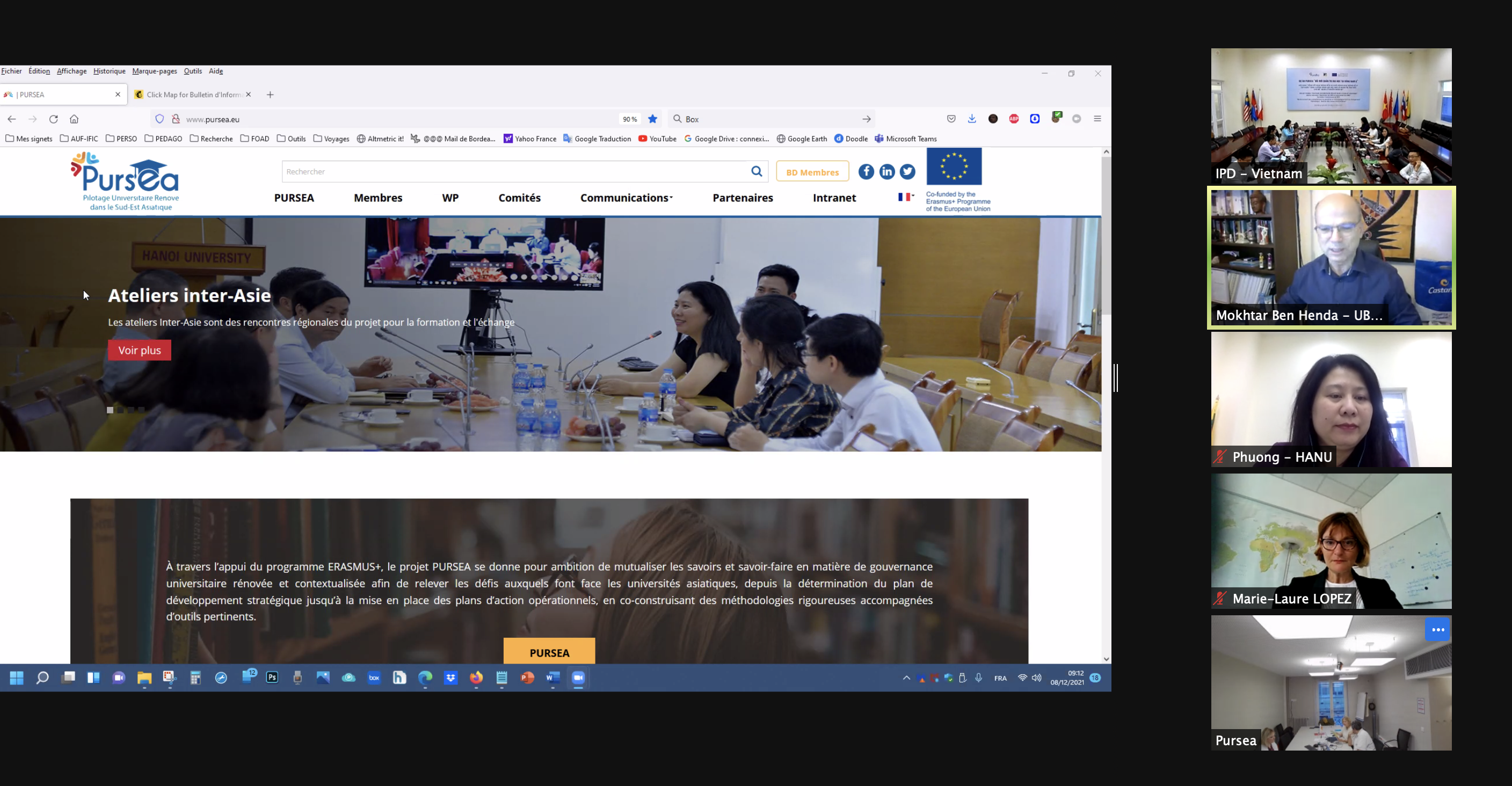 À cette occasion, Monsieur Mokhtar Ben Henda, point focal de l’équipe en charge du WP9 - Communication sur le projet et dissémination des résultats, a également présenté au consortium le siteweb officiel de PURSEA, construit et développé par le travail conjoint de l’Université Bordeaux Montaigne (UBM) et l’Université de Hanoi.