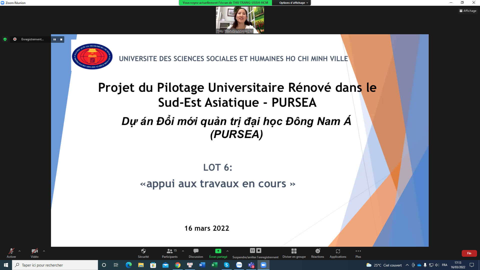 Le 16 mars 2022, s’est organisé à distance (sur Zoom meetings) un atelier d’avancement du lot ...